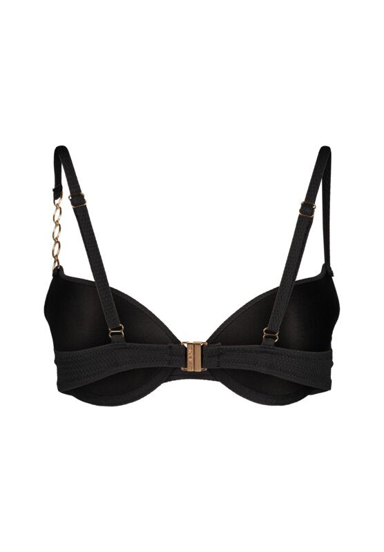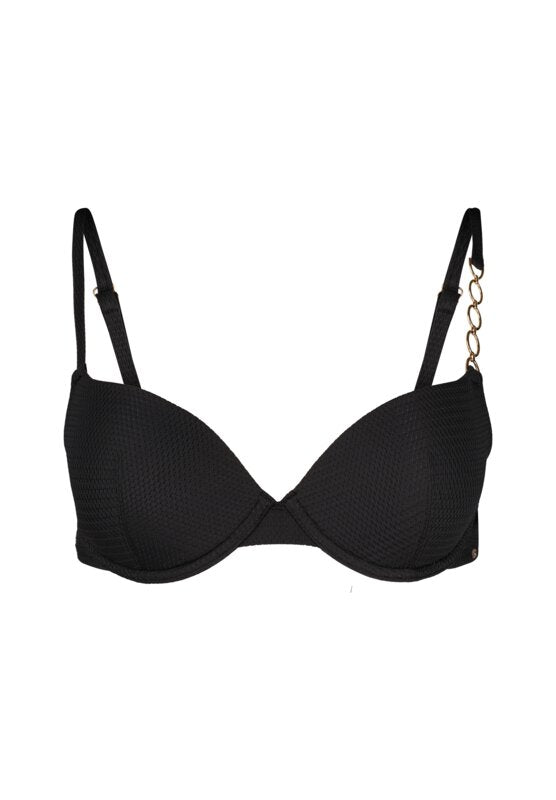 This padded push-up bra offers both comfort and style with its microfibre-covered pads and chain detail on the straps. The adjustable straps and hook closure provide a customisable fit, while the elasticated microfibre offers all-day comfort.