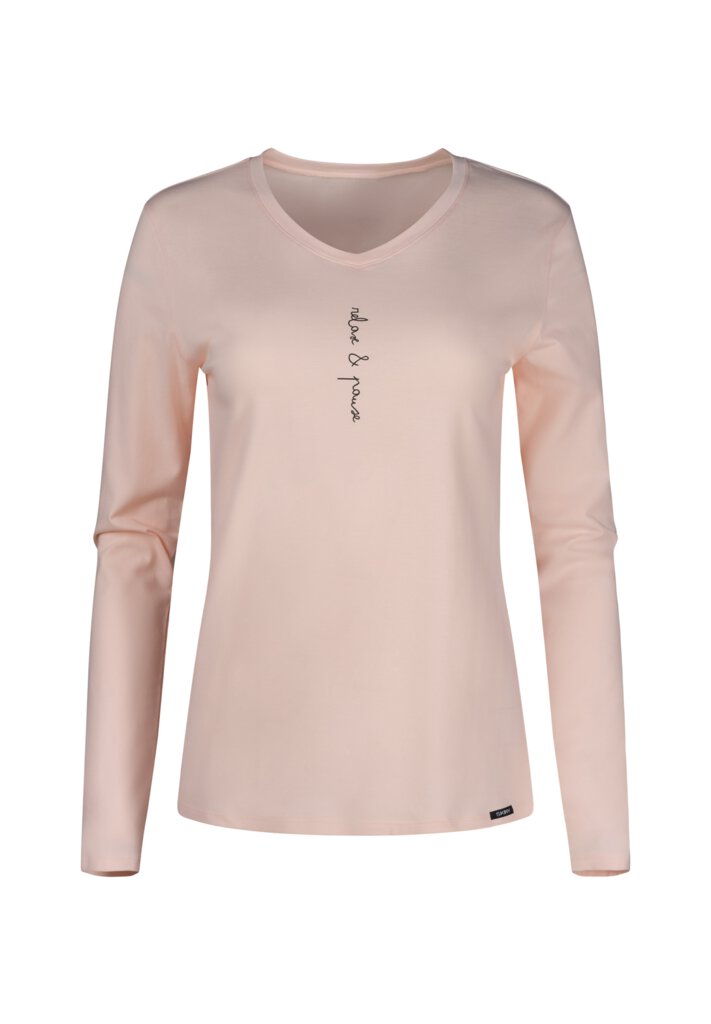 Wer sich nach einem langen Tag einfach nur wohlfühlen will, setzt auf dieses schöne Langarmshirt aus hochwertigem Baumwoll-Stretch. Das körpernah geschnittene Pyjama-Oberteil sitzt angenehm auf der Haut und ist dank leicht gerundetem V-Ausschnitt jederzeit ein Highlight - typisch SKINY.