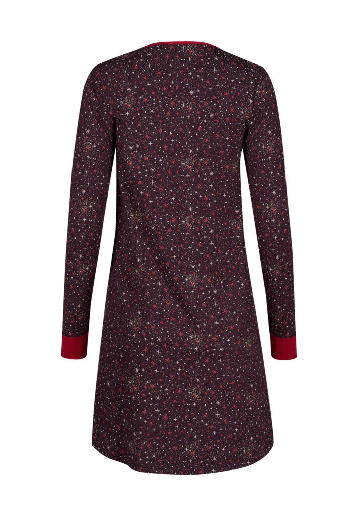 Hier funkelt es kräftig und wunderschön: Dieses traumhafte Sleepshirt mit langen Ärmeln und süßer Schleife am Hals lässt Frau leuchten wie einen Sternenhimmel. Der A-förmige Schnitt und die Bündchen an den Armabschlüssen machen aus der magischen Nachtwäsche eine runde Sache und ein echtes Komforterlebnis.