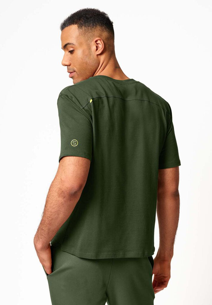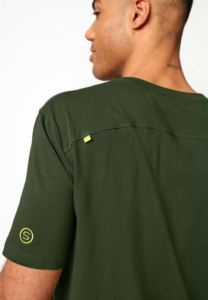 T-shirt versatile, perfetta da indossare fuori casa o per rilassarsi sul divano. Questa maglietta accompagna ogni momento della giornata, adattandosi con naturalezza a ogni occasione. Il modello a maniche corte si distingue per la vestibilità ampia e la pregiata lavorazione in tessuto di cotone, a garanzia di un comfort superiore. Come tocco di stile finale, presenta un loop tape lungo la cucitura posteriore.
