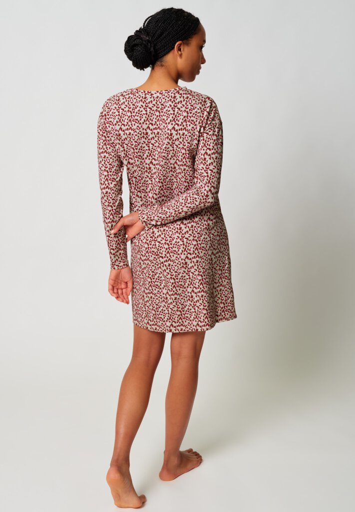 Nachthemd of jurk? Beide. Dit slaapshirt ziet er zo cool en modern uit dat het ook perfect is als loungekleding. Het voelt zacht en goed aan op de huid, met oversized schouders voor comfortabele bewegingsvrijheid en lange mouwen die warm houden zonder beperkend te zijn.